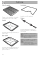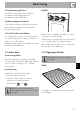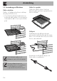 Rengöring och underhåll 5. Sätt tillbaka glasen i omvänd ordning i förhållande till demonteringen. 6. Montera det invändiga glaset igen. Var noga att centrera och genom att trycka lätt fästa de 4 stiften på rätt plats på luckan. 4.8 Rengöring av ugnens insida För att hålla ugnen i gott skick bör man rengöra den regelbundet. Låt den svalna först. Ta ut alla lösa delar. Rengör ugnsgallren med varmt vatten och icke-slipande rengöringsmedel. Skölj och torka de fuktiga delarna noga.