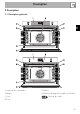 Description 2.2 Panneau de commandes 1 Manette de la température 2.3 Autres parties Cette manette permet de sélectionner la température de cuisson, la durée, de régler des cuissons programmées, l’heure actuelle et d’allumer ou d’éteindre la lumière à l’intérieur de la cavité de cuisson. Niveaux de positionnement 2 Afficheur Il affiche l’heure actuelle, la fonction et la température de cuisson sélectionnées ainsi que le temps éventuellement attribué.