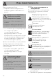 Описание 3 Использование 3.1 Меры предосторожности Неправильное использование Риск повреждения поверхностей • Не накрывайте дно духовки алюминиевой или оловянной фольгой. • Если используется бумага для выпечки, ее следует расположить так, чтобы она не мешала циркуляции горячего воздуха внутри духовки. • Не ставьте кастрюли или противни непосредственно на дно духовки. • Не наливайте воду на очень горячие противни.