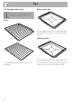 3.3 Użytkowanie akcesoriów Ruszt do blachy Ruszty i blachy Ruszt do blachy należy włożyć do niej. W ten sposób będzie można oddzielnie zebrać tłuszcz z pieczonego produktu. Ruszty i blachy powinny być wkładane w boczne prowadnice, aż do punktu zatrzymania. • Mechaniczne blokady bezpieczeństwa, które zapobiegają przypadkowemu wyjęciu rusztu powinny być odwrócone do dołu, w kierunku tylnej części piekarnika.