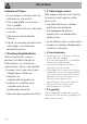 Käyttö SIANLIHAMAKKARA (noin 10-12 kpl) PORSAAN PEKONIFILE (noin 6 viipaletta paksuus 5 mm) PAISTETTU KALKKUNA KANAPAISTI Toiminto Taso Paino (Kg) Lämp. (°C) Aika (minuutteina) 4 0,3 280 11 4 0,2 250 3+1(1) 1 1,2 190 65 200 30 210 45 280 5 190 80 KIERTOILMAGRILLI KIERTOILMAGRILLI KIERTOILMA + + MULTISTEP KANIPAISTI (paloina) 2 2 1,3 1,0 KIERTOILMA Grillaa ruoat molemmilta puolilta viittaamalla taulukossa osoitettuihin aikoihin.