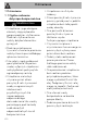 Ostrzeżenia • Nigdy nie próbować naprawiać urządzenia samodzielnie lub bez pomocy wykwalifikowanego technika. • Nigdy nie ciągnąć za przewód, aby wyjąć wtyczkę. USZKODZENIA URZĄDZENIA • Nie stosować ściernych ani agresywnych detergentów (np. produktów w proszku, odplamiaczy i metalowych gąbek) na częściach szklanych. Ewentualnie używać drewnianych lub plastikowych narzędzi. • Nie stosować materiałów chropowatych, ściernych ani ostrych metalowych skrobaków. • Nie siadać na urządzeniu.