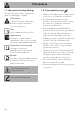 Użytkowanie Ostrzeżenia Wysoka temperatura wewnątrz komory pieczenia podczas użytkowania Niebezpieczeństwo poparzeń • Podczas pieczenia drzwiczki powinny być zamknięte. • Podczas przekręcania żywności w komorze pieczenia należy chronić ręce zakładając rękawice termiczne. • Nie dotykać elementów grzejnych wewnątrz komory pieczenia. • Nie wlewać wody bezpośrednio na bardzo gorące blachy. • Nie dopuszczać, aby dzieci zbliżały się do komory pieczenia podczas działania urządzenia.