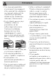 Ostrzeżenia • Montaż i naprawy powinny być wykonywane przez wykwalifikowany personel, zgodnie z obowiązującymi przepisami. • Nigdy nie próbować naprawiać urządzenia samodzielnie lub bez pomocy wykwalifikowanego technika. • Nigdy nie ciągnąć za przewód, aby wyjąć wtyczkę. USZKODZENIA URZĄDZENIA • Nie stosować ściernych ani agresywnych detergentów (np. produktów w proszku, odplamiaczy i metalowych gąbek) na częściach szklanych. Ewentualnie używać drewnianych lub plastikowych narzędzi.