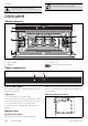 понятия: Информация/Рекомендации Предупреждение/Внимание ОПИСАНИЕ Общее описание 1 Панель управления 2 Прокладка 3 Лампа 4 Дверца 5 Вентилятор Уровень для размещения Панель управления 1 Кнопка ВКЛ-ВЫКЛ Кнопка ВКЛ-ВЫКЛ позволяет включить или выключить прибор. размещения противней и решеток на разной высоте. Уровни высот установки учитываются снизу вверх. 2 Дисплей Сенсорный дисплей служит для взаимодействия с прибором. Для доступа к различным функциям необходимо коснуться соответствующих иконок.
