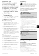 VARNING 361 Allmänna säkerhetsanvisningar Vad gäller denna apparat Apparatens syfte Denna bruksanvisning Tillverkarens ansvar Identifikationsdekal Bortskaffning Indikationer för europeiska kontrollorgan Tekniska uppgifter om energieffektivitet Spara energi Ljuskälla Hur man läser bruksanvisningen 361 364 365 365 365 365 365 365 366 366 366 366 BESKRIVNING 367 Allmän beskrivning Kontrollpanel Andra delar Tillbehör Tillbehör (köps separat) 367 367 367 368 368 ANVÄNDNING 368 Förberedelser 368 Använ