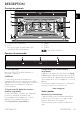 Grille Turbine de refroidissement Utile pour y placer les récipients contenant des aliments en train de cuire. Lèchefrite profonde La turbine refroidit l’appareil et se met en marche pendant la cuisson. Le fonctionnement de la turbine crée un flux d’air normal qui sort au-dessus de la porte et peut continuer pendant un court moment même après l’arrêt de l’appareil.