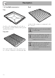 Description 1.4 Available accessories Rack Tray Used for collecting grease from foods on the rack above and for baking cakes, pizza and baked desserts. Used to hold containers containing food to be cooked. Not all accessories are provided on all models. Tray rack Accessories that may come into contact with food are made of materials that comply with all legal provisions in force. This is placed above the tray, and is used for cooking or baking foods that might drip.