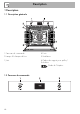 Description 1 Description 1.1 Description générale 1 Panneau de commande 2 Lampe d’éclairage du four 3 Joint 4 Porte 5 Ventilateur 6 Cadres de support pour grilles/ lèchefrites Cadre de l’étagère 1.