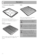 Utilisation 2.3 Utilisation d’accessoires Grille pour lèchefrite Grilles et lèchefrites La grille pour lèchefrite doit être insérée à l’intérieur de la lèchefrite. De cette façon, la graisse peut être recueillie séparément des aliments en cours de cuisson. Les grilles et les lèchefrites doivent être insérées dans les glissières latérales jusqu’à leurs butées.
