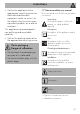 Use 3.2 Preliminary operations List of icons In order to remove any moisture that could have accumulated during the manufacturing process and for the electronic circuits and control keypad to work properly: 1. Remove the protective films from the external surfaces of the appliance and accessories. 2. Remove any labels (apart from the technical data plate). All the appliance’s control and monitoring devices are located together on the front panel.