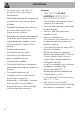 Sisällysluettelo 1 Varoitukset 80 Turvallisuuteen liittyvät yleiset varoitukset Laitteen käyttötarkoitus Hävittäminen Miten käyttöohjetta luetaan 2 Kuvaus 80 84 84 85 86 2.1 Yleinen kuvaus 2.2 Ohjauspaneeli 86 87 3 Käyttö 89 3.1 3.2 3.3 3.4 3.5 3.6 3.7 3.8 89 90 90 98 101 102 104 107 Varoitukset Esitoimenpiteet Keittotason käyttö Ylimääräiset toiminnot Erityistoiminnot Asetusvalikko Käyttäjävalikko Virhekoodit 4 Puhdistus ja hoito 4.1 4.2 4.3 4.4 4.