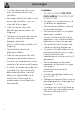 Innehåll 1.1 1.2 1.6 1.7 Allmänna säkerhetsanvisningar Apparatens syfte Bortskaffning Så här läser du bruksanvisningen 2 Beskrivning 2.1 Allmän beskrivning 2.2 Kontrollpanel 3 Användning 3.1 3.2 3.3 3.4 3.5 3.6 3.7 3.8 Anvisningar Förberedelser Användning av spishällen Extrafunktioner Specialfunktioner Inställningsmeny Meny Felkoder 4 Rengöring och underhåll 4.1 4.2 4.3 4.4 4.5 Anvisningar Rengöring av ytorna Vanlig rengöring varje vecka Matstänk eller rester Vad gör man om... 5 Installation 5.1 5.