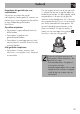 Gebruik 3.2 Voorbereiding Om de eventuele vochtigheid te verwijderen die wordt opgehoopt tijdens de bewerkingen in de fabriek, voor een correcte functionering van de elektronische circuits en van de bedieningen: 1. Verwijder de beschermfolie van de externe oppervlakken van het apparaat en van de accessoires. 2. Verwijder eventuele etiketten (behalve het plaatje met de technische gegevens). 3.