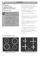 Предупреждения • Стеклокерамическая поверхность не должна использоваться как опорная поверхность! • В случае наличия крышки, перед ее открыванием удалить с нее возможные перелившиеся жидкости. • Перед тем как накрыть крышкой варочную поверхность, необходимо дать ей охладиться. • Носители электрокардиостимулятора или подобных аппаратов должны удостовериться, что функционирование их приборов не будет повреждено индуктивным полем, частота которого находится в диапазоне от 20 до 50 кГц.
