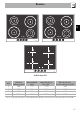 FI Kuvaus Mallit kehyksellä Alue 1 2 3 4 Ulkoinen halkaisija (mm) 160 210 160 210 Min. kattila Ø (mm) 110 120 110 120 Max absorboitu teho (W)* 1300 2300 1300 2300 Absorboitu teho Booster-toiminnossa (W)* 1400 3000 1400 3000 * tehot ovat viitteellisiä ja voivat vaihdella valittujen asetusten ja verkkojännitteen mukaan.