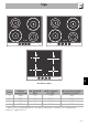 PL Opis Modele z ramką Strefa 1 2 3 4 Średnica Min. garnka Ø zewnętrzna (mm) (mm) 160 110 210 120 160 110 210 120 Maks. pobrana moc (W)* 1300 2300 1300 2300 Moc pobrana podczas funkcji Booster (W)* 1400 3000 1400 3000 * wartości mocy są przykładowe i mogą się zmieniać w zależności od wybranych ustawień i napięcia sieci.