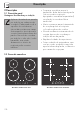 Advertências • A superfície em vitrocerâmica não deve ser usada como superfície de apoio. • Se presentes, remova da tampa os eventuais líquidos derramados antes de a abrir. • Antes de fechar a tampa, deixe arrefecer a placa de cozinha. • Os portadores de pacemaker ou outros dispositivos semelhantes devem assegurar-se de que o funcionamento dos seus equipamentos não seja prejudicado pelo campo indutivo, cuja gama de frequência está compreendida entre 20 e 50 kHz.