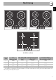 Beskrivning 2.3 Symboler Vred Läge OFF Kokzonen är avstängd. Booster-läge I detta läge aktiveras kokzonens boosterfunktion. Turbo-läge I detta läge aktiveras kokzonens turbofunktion. Kokzoner Vrid vredet medurs eller moturs för att öka eller minska effekten för kokzonen vars värde visas på displayen.