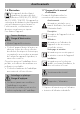 Avertissements • N’utilisez jamais la surface en vitrocéramique comme un plan d’appui. • S’il est présent, éliminez du couvercle les éventuels liquides ayant débordé avant de l’ouvrir. • Avant de fermer le couvercle, laissez refroidir la plaque de cuisson. • Les porteurs de pacemakers ou d’autres dispositifs semblables doivent s’assurer que le fonctionnement de leurs appareils n’est pas compromis par le champ inductif dont la gamme de fréquence est comprise entre 20 et 50 kHz.