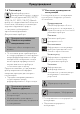 Предупреждения • Стеклокерамическая поверхность не должна использоваться как опорная поверхность! • В случае наличия крышки, перед ее открыванием удалить с нее возможные перелившиеся жидкости. • Перед тем как накрыть крышкой варочную поверхность, необходимо дать ей охладиться. • Носители электрокардиостимулятора или подобных аппаратов должны удостовериться, что функционирование их приборов не будет повреждено индуктивным полем, частота которого находится в диапазоне от 20 до 50 кГц.