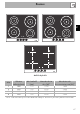 FI Kuvaus Mallit kehyksellä Alue 1 2 3 4 Ulkoinen halkaisija (mm) 180 230 180 230 Min. kattila Ø (mm) 110 120 110 120 Max absorboitu teho (W)* 1300 2300 1300 2300 Absorboitu teho Booster-toiminnossa (W)* 1400 3000 1400 3000 * tehot ovat viitteellisiä ja voivat vaihdella valittujen asetusten ja verkkojännitteen mukaan.