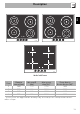 Contents 1.2 Appliance purpose 1.7 How to read the user manual 2 Description 2.1 General Description 2.2 Cooking zones 2.3 Symbols 3 Use 32 35 37 38 38 38 40 41 3.1 Preliminary operations 3.2 Using the hob 42 42 4 Cleaning and maintenance 50 4.1 4.2 4.3 4.4 Cleaning the surfaces Ordinary weekly cleaning Food stains or residues What to do if... 5 Installation 5.1 5.2 5.3 5.4 5.
