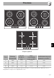 RU Описание Модель с рамкой Зона Диаметр внешний (мм) 1 2 3 4 160 210 160 210 Мин. Ø кастрюли (мм) 110 120 110 120 Макс. потребляемая мощность (Вт)* 1300 2300 1300 2300 Потребляемая мощность в функции booster (Вт)* 1400 3000 1400 3000 * значения мощности указаны приблизительно и могут меняться в зависимости от выбранных настроек и напряжения сети.