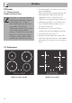 Kuvaus 2.3 Symbolit Kytkimet OFF-asento Keittoalue on sammunut. Booster-asento Tässä asennossa aktivoituu keittoalueen booster-toiminto. Tehokuumennus Tässä asennossa aktivoituu keittoalueen tehokuumennus. Keittoalueet Käännä kytkintä myötä- tai vastapäivään tai vähennä keittoalueen tehoa jonka arvo näkyy näytöllä.