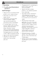 Sisällysluettelo 1 Varoituksia 76 Turvallisuuteen liittyvät yleiset varoitukset Laitteen käyttötarkoitus Hävittäminen Miten käyttöohjetta luetaan 2 Kuvaus 76 80 81 82 83 2.1 Yleinen kuvaus 2.2 Ohjauspaneeli 83 84 3 Käyttö 86 3.1 3.2 3.3 3.4 3.5 3.6 3.7 86 87 87 95 96 99 101 Varoituksia Esitoimenpiteet Keittotason käyttö Erityistoiminnot Ylimääräiset toiminnot Käyttäjävalikko Virhekoodit 4 Puhdistus ja hoito 4.1 4.2 4.3 4.4 4.