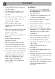 Anvisningar • Använd alltid kokkärl med jämn och plan botten. • Om det kokar över eller rinner över, torka bort vätskan från spishällen. • Var noga med att inte hälla ut sura ämnen på spishällen, som t.ex. citronsaft eller vinäger. • Häll inte socker eller söta blandningar på spishällen vid tillagning. • Placera inte material eller ämnen som kan smälta eller fatta eld (papper, plast eller aluminiumfolie) på spishällen vid tillagning. • Placera kärlen direkt på glaskeramikhällen.