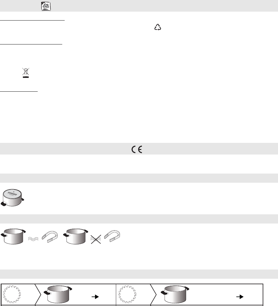 BELANGRIJK: als de pannen niet de vereiste afmetingen hebben, zullen de kookzones niet werken. Gebruik alleen pannen met het symbool