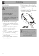 8. Tryck på frigöringsknappen (1) och höj