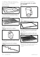 1. Abra la puerta. 2. Coloque la bandeja profunda en el tercer nivel desde abajo. Empújela hasta la pared trasera del interior del horno. 3. Después de entrar en el menú de las 2. Abra la puerta y saque el cajón de llenado de su alojamiento. funciones especiales, pulse la tecla hasta seleccionar la función . 4. Pulse la tecla para confirmar. 5. Lleve a cabo el procedimiento de descalcificación como se ilustra en los apartados anteriores. 3. Coloque el embudo suministrado en el cajón de llenado.