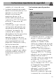 Uso Alta temperatura Peligro de quemaduras • Protéjase las manos con guantes térmicos durante el uso. • No toque ni limpie la placa de cocción durante el funcionamiento o cuando las luces de advertencia de calor residual estén encendidas. • Las superficies de cocción pueden estar calientes aunque aparezcan de color oscuro. • No coloque ollas y sartenes vacías en las zonas de cocción cuando estén encendidas. • No permita que los niños menores de 8 años se acerquen al aparato durante el funcionamiento.