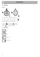 Description 2.2 Symbols Knobs Used for lighting and adjusting the hob burners. Press and turn anti-clockwise to in order to light the relative burners. Turn the knobs to the zone between the maximum and minimum setting to adjust the flame. Return the knobs to the position to turn off the burners.
