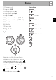 Kuvaus 2.2 Symbolit Keittoalueet Edessä Takana FI 1 Ohjauspaneeli 2 Lisäpoltin (AUX) 3 Puolinopea poltin (SR) 4 Nopea pieni poltin (RR) 5 Pikapoltin (UR3) 6 Pikapolttimen ulkokruunu (UR2 ulko) 7 Pikapolttimen sisäkruunu (UR2 sisä) 8 Oikea ritilä 9 Keskiritilä 10 Vasen ritilä Keskellä vasemmalla Keskellä oikealla Keskellä ulkoinen Kytkimet Keskellä sisäinen Edessä Takana Käytetään tasolla olevien polttimien sytyttämiseen ja säätämiseen.