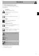 Varoitukset 1.7 Miten käyttöohjetta luetaan Tässä käyttöohjeessa käytetään seuraavia kuvamerkkejä: FI Varoitukset Yleistietoja liittyen tähän käyttöohjeeseen, turvallisuuteen ja hävittämiseen. Kuvaus Laitteen ja lisävarusteiden kuvaus. Käyttö Laitteeseen ja lisävarusteisiin liittyvää tietoa. Puhdistus ja huolto Laitteen oikeaan puhdistamiseen ja huoltoon liittyvää tietoa. Asennus Pätevälle teknikolle kuuluvaa tietoa: asennus, käyttöönotto ja säätö. Turvallisuuteen liittyvät varoitukset Tietoa Neuvo 1.