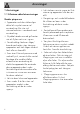 Anvisningar • Var noga att inte hälla ut sura ämnen på spishällen, som t.ex. citronsaft eller vinäger. • Ställ inte tomma kastruller eller stekpannor på tända kokzoner. • Rengör aldrig apparaten med ångstråle. • Använd inte repande eller sträva material eller vassa metallskrapor. • Använd inte rengöringsmedel som innehåller klor, ammoniak eller blekmedel på delar i stål eller delar som ytbehandlats med metall (som till exempel är anodiserade, förnicklade eller förkromade).