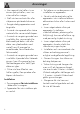 • Placera inga metallföremål, som husgeråd eller bestick, på hällens yta när den används eftersom de kan överhettas. • För inte in spetsiga metallföremål (bestick eller verktyg) i apparatens springor. • Häll inte vatten direkt på varma plåtar. • Använd inte sprayflaskor i närheten av apparaten medan den är igång. • Stäng av apparaten efter användning. • Gör inte några ändringar på apparaten. • Försök aldrig reparera apparaten själv eller utan att anlita en kvalificerad tekniker.