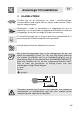Anvisningar till användaren 8.2 Rengöring av delar på spishällen VARNING: tvätta inte dessa komponenter i diskmaskin. Vid normal användning av spishällen blir de rostfria gallren och brännarlocken lätt brunfärgade på grund av den höga värmen. Rengör dessa delar med en svamp med mycket lätt slipande effekt eller liknande produkter som säljs i handeln. Torka efter med specifik polerpasta så att de rostfria delarna blir blanka igen.