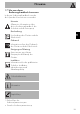 Hinweise 1.7 Wie man dieses Bedienungshandbuch lesen muss In diesem Bedienungshandbuch werden die folgenden Konventionen verwendet: DE Hinweise Allgemeine Informationen über dieses Bedienungshandbuch, die Sicherheit und die Entsorgung. Beschreibung Beschreibung des Gerätes und der Zubehörteile. Gebrauch Informationen über den Gebrauch des Gerätes und der Zubehörteile. Reinigung und Wartung Anweisungen zur richtigen Reinigung und Wartung des Gerätes.