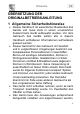 Hinweise ÜBERSETZUNG DER ORIGINALBETRIEBSANLEITUNG 1 Allgemeine Sicherheitshinweise Dieses Handbuch ist wesentlicher Bestandteil des Geräts und muss stets in einem unversehrten Zustand beim Gerät aufbewahrt werden. Vor dem Gebrauch des Geräts sollten alle in diesem Handbuch enthaltenen Informationen aufmerksam gelesen werden.