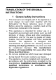 Installation TRANSLATION OF THE ORIGINAL INSTRUCTIONS 1 General safety instructions This manual is an integral part of the appliance; it must always be kept intact together with the dishwasher for future reference (even if sold). Before using the appliance, carefully read all the instructions contained in this manual.