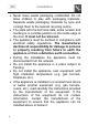Installation Do not use adaptors or shunt connections in order to avoid the possibility of overheating or burning. The power cable must be replaced by the manufacturer or by an Authorized Service Centre.
