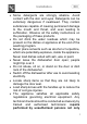 Installation Do not use adaptors or shunt connections in order to avoid the possibility of overheating or burning. The power cable must be replaced by the manufacturer or by an Authorized Service Centre.