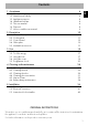 Contents 1.1 1.2 1.3 1.4 1.5 1.6 1.7 4 General safety instructions Manufacturer liability Appliance purpose Identification plate This user manual Disposal How to read the user manual 2 Description 2.1 2.2 2.3 2.4 2.5 General Description Cooking hob Control panel Other parts Available accessories 10 11 12 12 13 15 Using the accessories To save energy Using the hob Using the ovens Programmer clock 4 Cleaning and maintenance 4.1 4.2 4.3 4.4 4.5 4.6 4 8 8 8 8 8 9 10 3 Use 3.1 3.2 3.3 3.4 3.