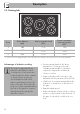 Use Keep warm The Keep warm function allows you to keep cooked food hot. To activate the Keep Warm function: • Turn the knob for the desired cooking zone until the symbol appears on the corresponding display. Booster function The booster function allows the cooking zone to be activated at maximum power for as long as 5 minutes. It can be used to bring a large quantity of water to a boil rapidly or to broil meat. Power control The hob is fitted with a power control module that optimises/limits consumption.
