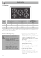 Bruk Effektnivåer Hurtigvarming Effektnivå Egnet til: 0 Posisjon OFF U Varmeholdingsmodus Tilberedning av små mengder mat (minimum effekt) Tilberedning Tilberedning av store mengder mat, steke større porsjoner Steke, brune meljevning 1-2 3-4 5-6 7-8 9 Steke Steke / brune, koke P* (maksimal effekt) * se booster-funksjon Restvarme Feilaktig bruk Fare for forbrenning • Hold barn under oppsyn siden de ikke lett kan se restvarmeindikatoren.