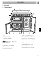 Descrição 2.3 Painel de comandos 1 Botões das zonas de cozedura da placa 4 Lâmpada indicadora do grelhador variável do forno auxiliar Úteis para controlar as zonas de cozedura da placa por indução. Pressione e rode os botões em sentido horário para ajustar a potência de funcionamento da placa que vai de um mínimo de 1 até um máximo de 9. A potência de funcionamento é indicada por um display situado sobre a placa de cozinha. Acende-se para indicar que o forno auxiliar está em fase de aquecimento.